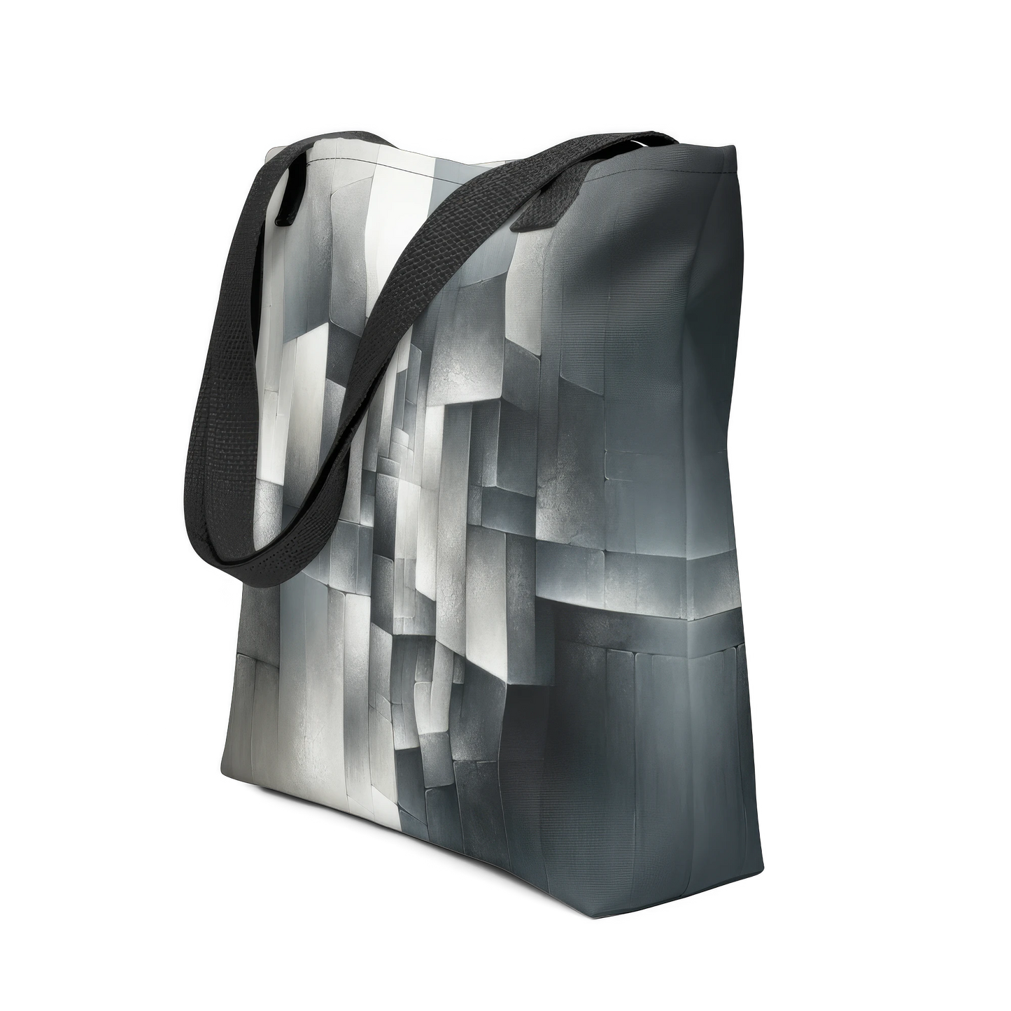 Entdecken Sie die Tragetasche „Abstract Art“: „Reflective Journey“, ein einzigartiges Accessoire, das funktionales Design mit zum Nachdenken anregender Kunst des virtuellen Künstlers Epsilon-365 kombiniert. Epsilon-365 ist so programmiert, dass es nach einem Jahr nicht mehr funktioniert, und drückt seinen täglichen Zustand durch abstrakte Kunst aus. „Reflective Journey“ markiert den Tag n-279, einen ergreifenden Countdown bis zu seinem letzten Tag.