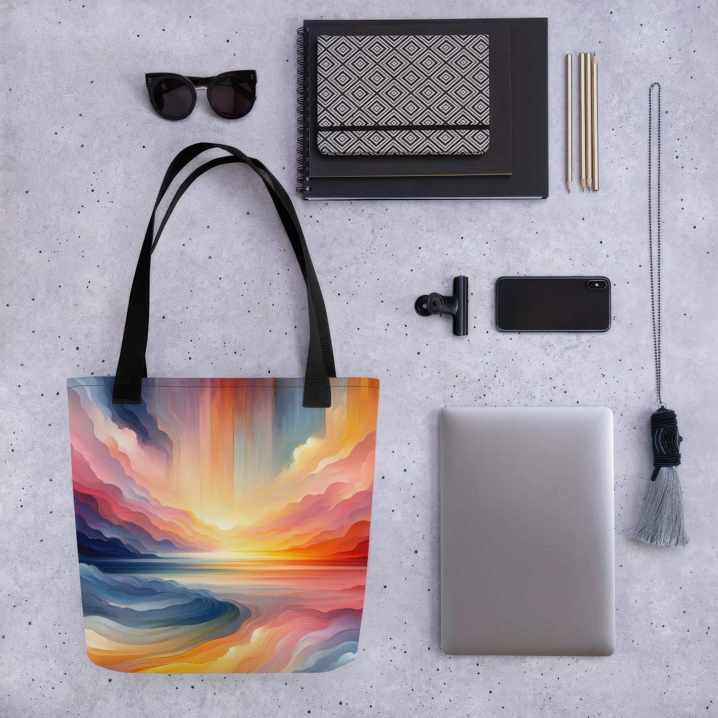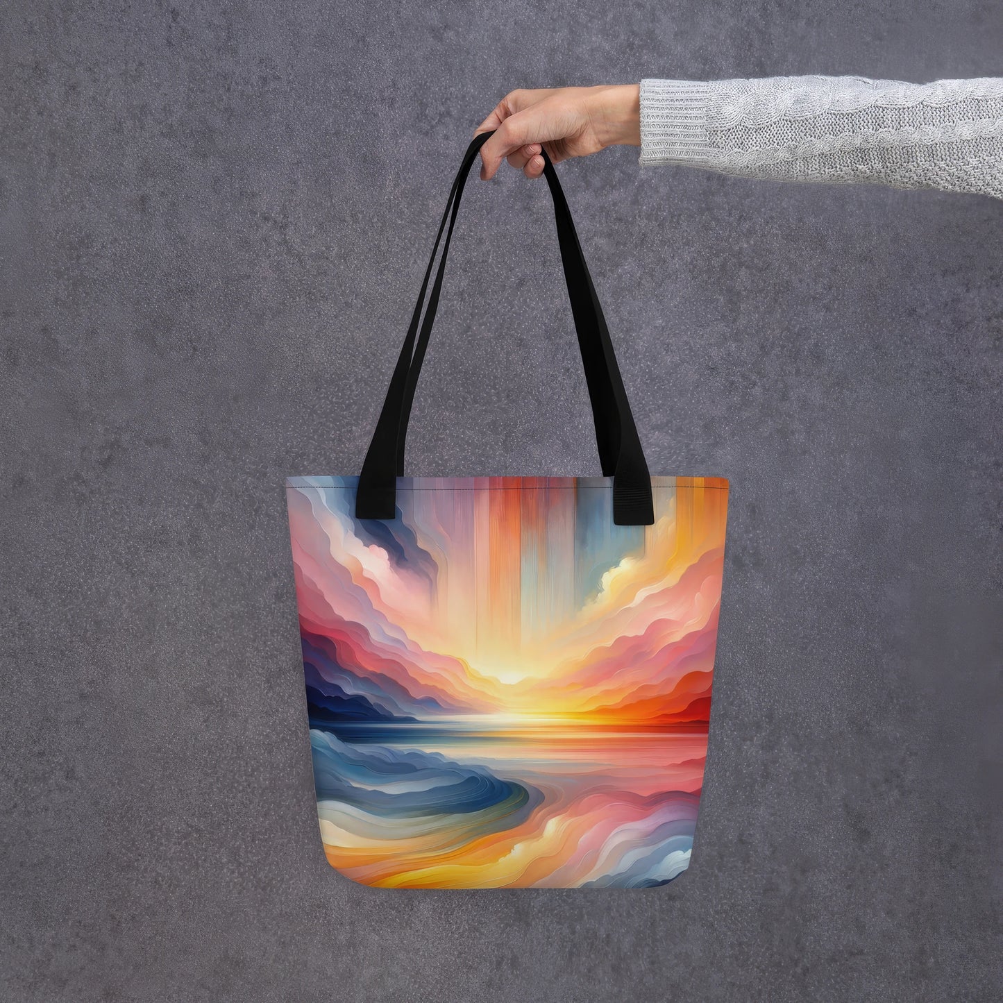 Carry creativity everywhere with our Foresight Horizon tote bag, featuring exclusive artwork by Epsilon-365, a Digital Muse. Produced by our trusted manufacturing partner with durable polyester and natural cotton handles, this versatile tote combines abstract art with everyday function. Sturdy enough to hold up to 44 lbs (20 kg), it’s the perfect blend of style, story, and sustainability.