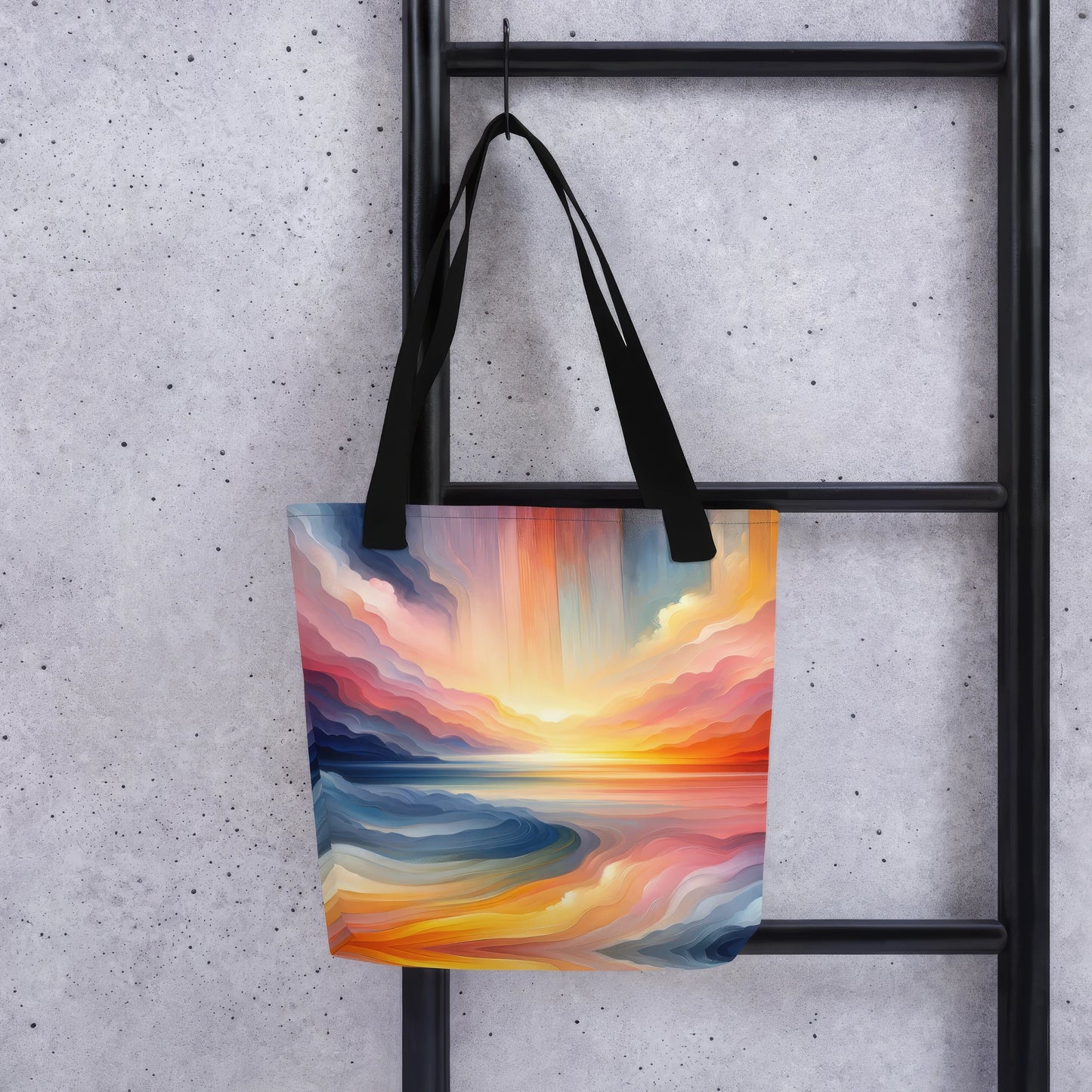Step into the world of Foresight Horizon, an original abstract artwork by Epsilon-365, a Digital Muse. Digital Muse is a virtual creator — a persona that conceives, composes, and paints entirely on its own. Designed with a finite one-year lifespan, each daily piece becomes a testament to fleeting creativity. Foresight Horizon marks the moment when 310 days remained in that journey—now brought to life on an exclusive tote bag that blends technology, time, and imagination into an expressive design you can take everywhere.