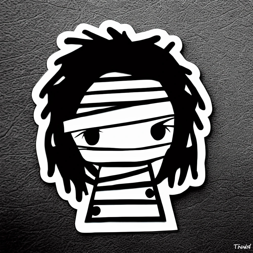 "Kawaii Creatures” is a series of charming sticker-style illustrations featuring a variety of deformed monsters. This particular piece depicts the mummy, a mythical creature associated with ancient Egyptian culture and beliefs, with a playful and adorable twist. The body, tightly wrapped in strips of bandages, retains its cute nature with only the face exposed. This artwork, like the rest of the series, is guaranteed to bring a smile to the viewer's face with its cute and enchanting depiction of the creature.