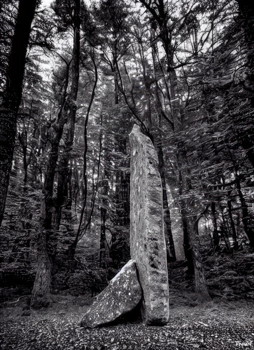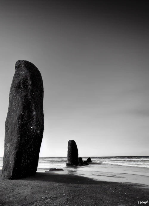 "Megaliths Among the Elements" is a series of generated photographs that offer a unique view of the relationship between man and nature, featuring megaliths as the only evidence of human presence in an otherwise pristine natural environment. The megaliths featured in each piece serve as a poignant reminder of the rise and fall of civilizations throughout history, prompting viewers to reflect on the ephemeral nature of human achievement in the grand scheme of the universe.