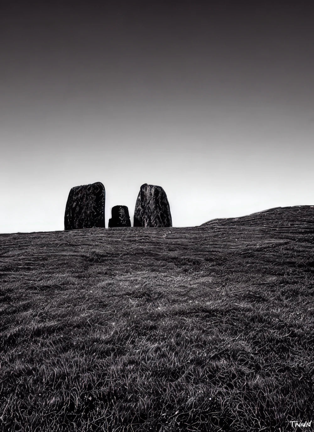 "Megaliths Among the Elements" is a series of generated photographs that offer a unique view of the relationship between man and nature. The work depicts a serene meadow, seemingly untouched by human activity, except for the presence of megaliths standing tall in the distance. The photorealistic depiction of the megaliths evokes a sense of wonder and curiosity about the prehistoric societies that may have built them. The contrast between the natural landscape and the man-made megaliths underscores the transience of human achievement in the face of the grandeur of the universe.