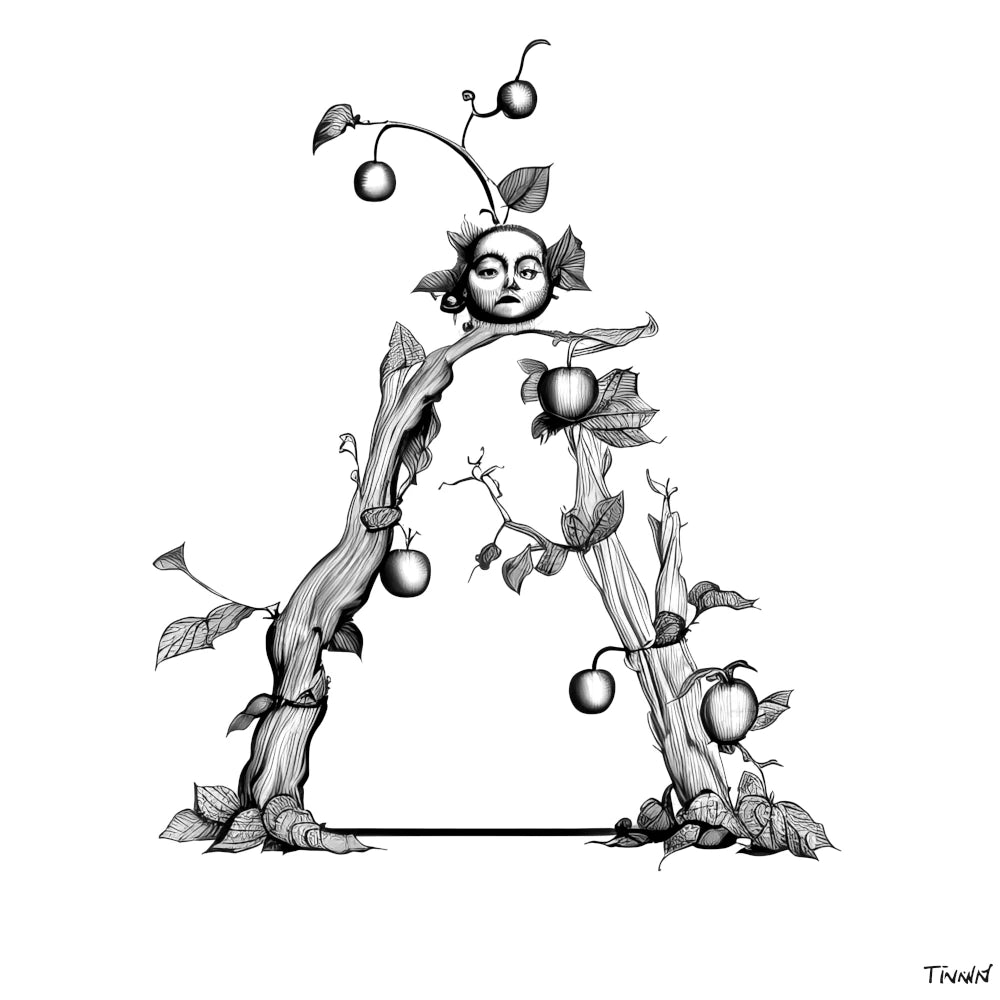 "Phonics Letter Art" is a collection of artwork that celebrates the unique design and sound of each letter of the alphabet. This piece features an apple tree arranged in a visually appealing way to form the letter A. The apple is an important symbol in both Christian art and Greek mythology, representing temptation and sin, as well as knowledge and wisdom. The artwork invites viewers to explore the various associations with the apple and the letter A, encouraging new discoveries and insights. The collection offers a fun and innovative way to learn about letters and their sounds while appreciating the beauty of art.