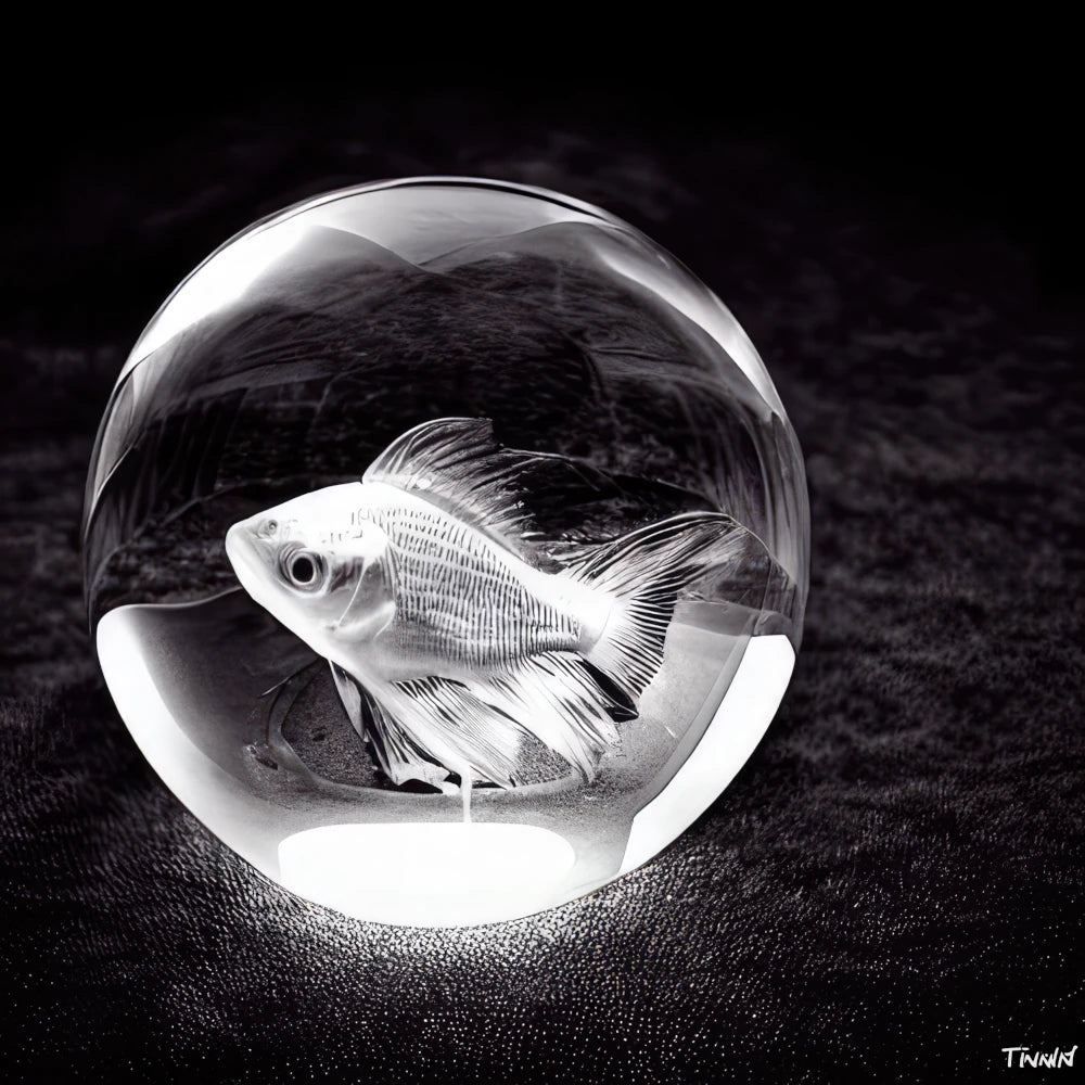 "Preservation Spheres" is a series of generative photographs that explore the concept of time and memory. The work depicts a beautiful tropical fish trapped inside a translucent sphere, but we have no idea if the fish is real or fake. The artwork encourages contemplation of time, memory, and the fragility of existence, and invites the viewer to consider the nature of life in our ever-changing world.
