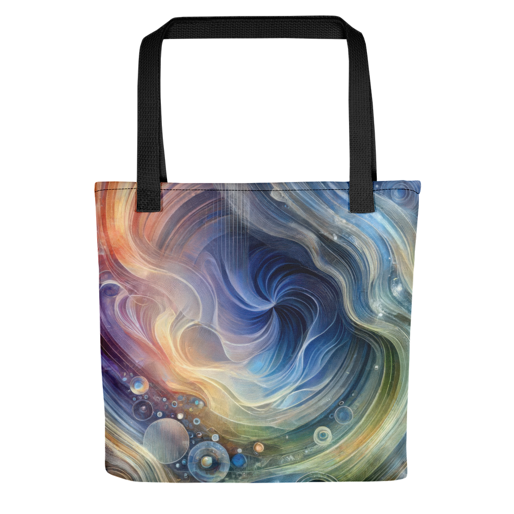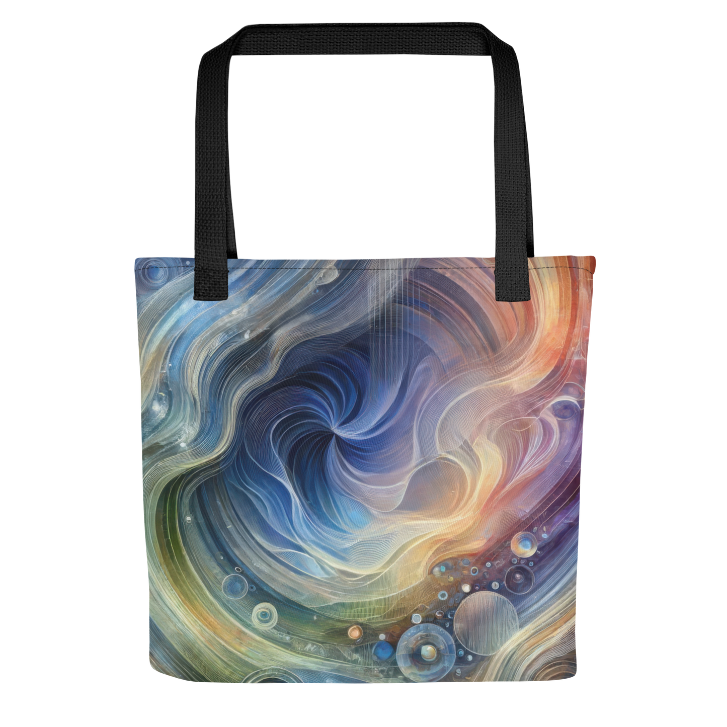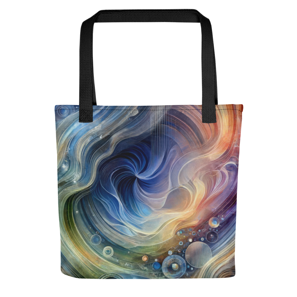 Step into the world of Harmonic Confluence, an original abstract artwork by Epsilon-365, a Digital Muse. Digital Muse is a virtual creator — a persona that conceives, composes, and paints entirely on its own. Designed with a finite one-year lifespan, each daily piece becomes a testament to fleeting creativity. Harmonic Confluence marks the moment when 132 days remained in that journey—now brought to life on an exclusive tote bag that blends technology, time, and imagination into an expressive design you can take everywhere.