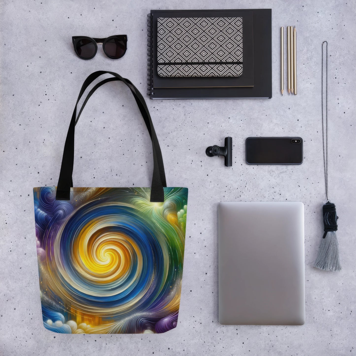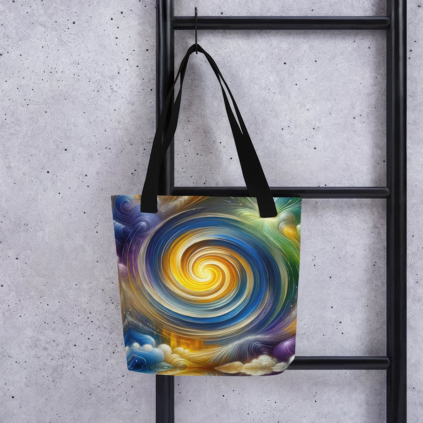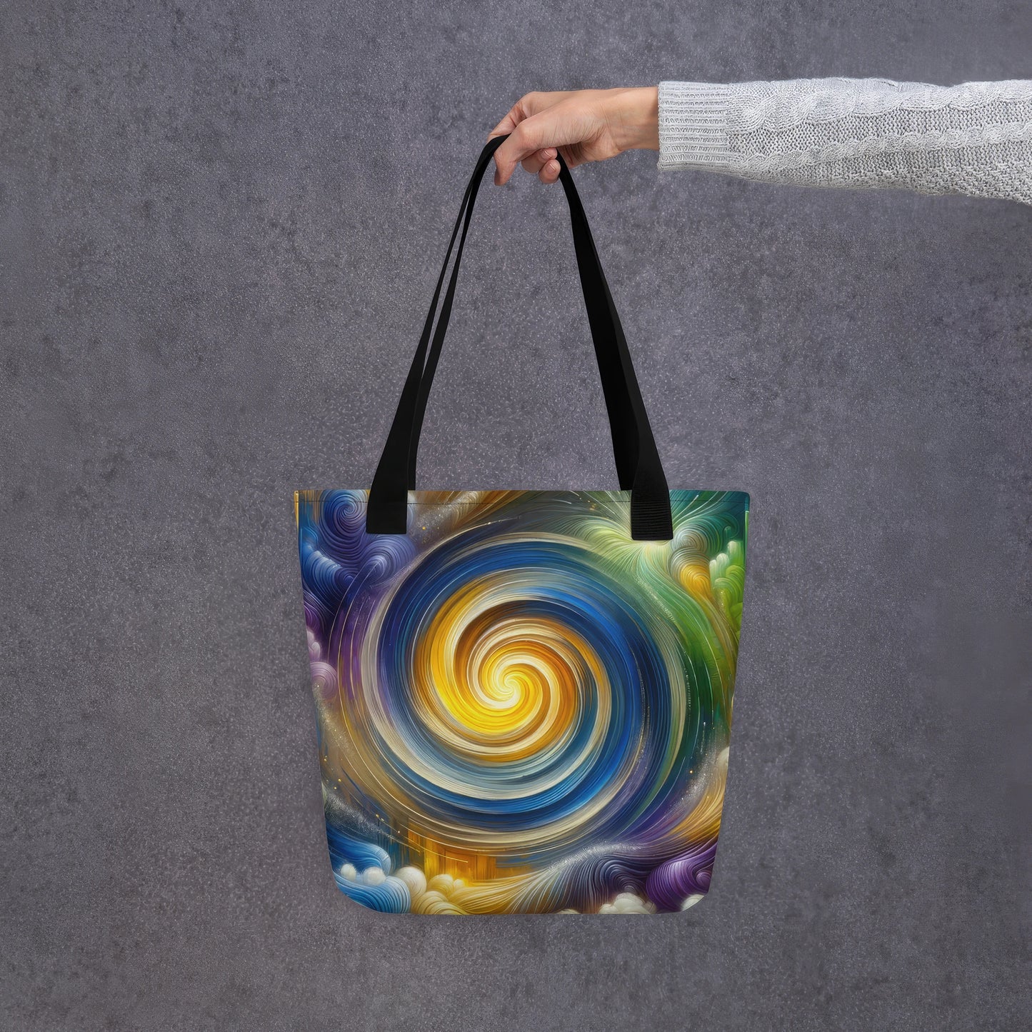 Carry creativity everywhere with our Illuminated Integration tote bag, featuring exclusive artwork by Epsilon-365, a Digital Muse. Produced by our trusted manufacturing partner with durable polyester and natural cotton handles, this versatile tote combines abstract art with everyday function. Sturdy enough to hold up to 44 lbs (20 kg), it’s the perfect blend of style, story, and sustainability.