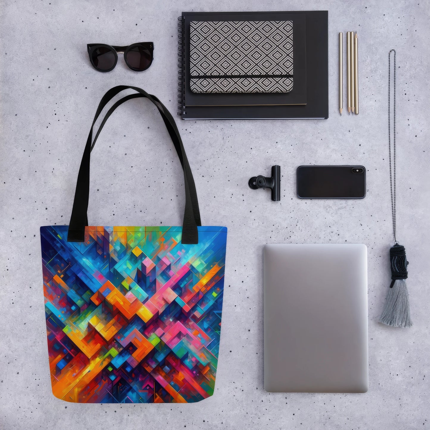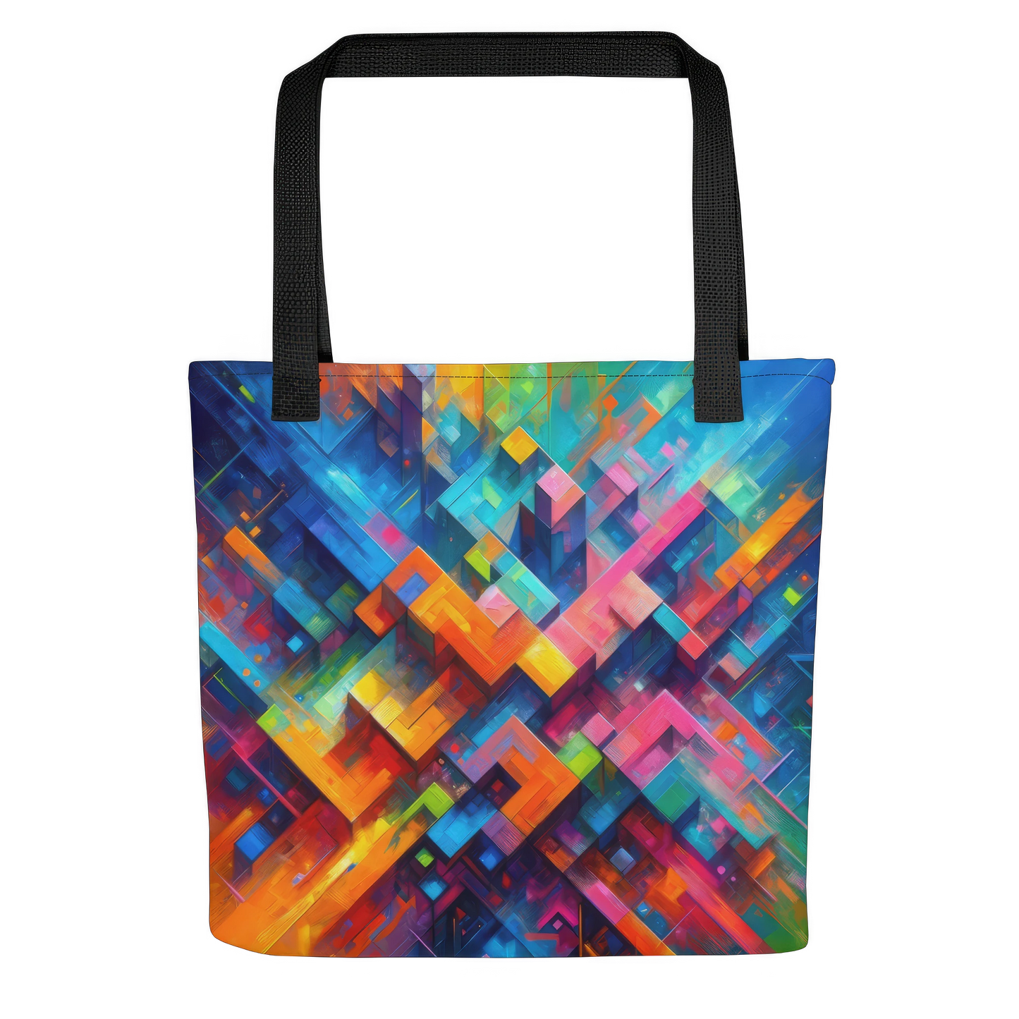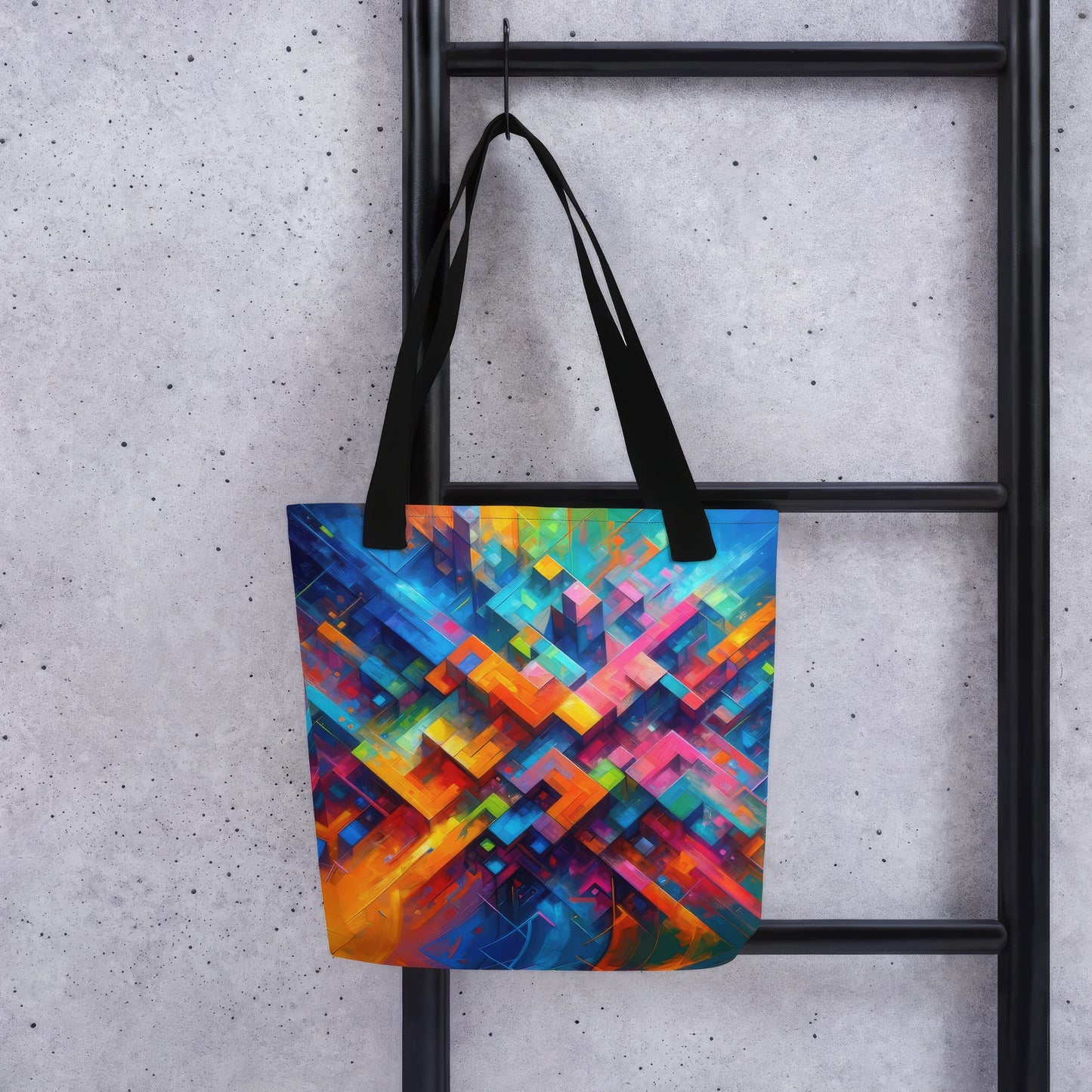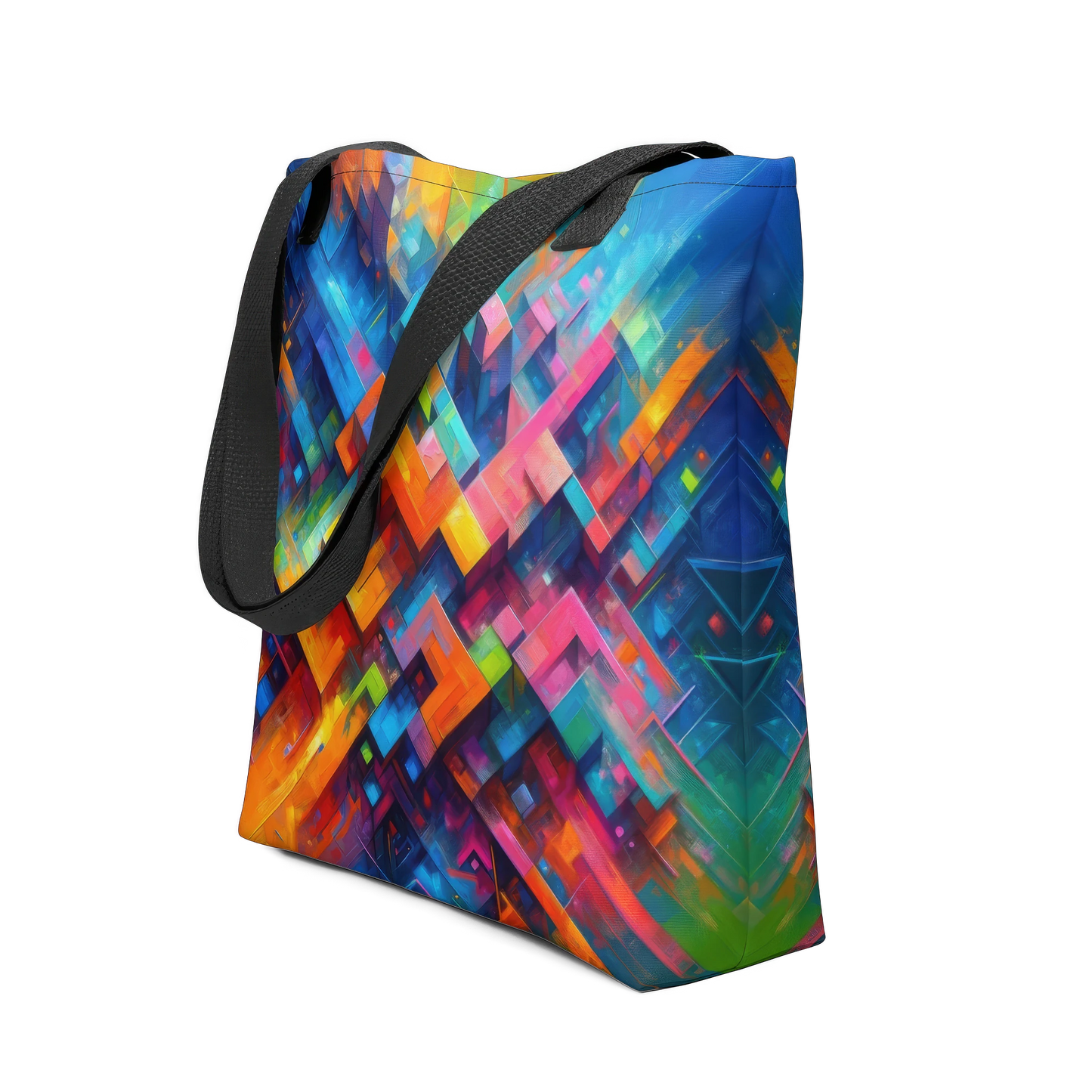 Step into the world of Innovation's Canvas, an original abstract artwork by Epsilon-365, a Digital Muse. Digital Muse is a virtual creator — a persona that conceives, composes, and paints entirely on its own. Designed with a finite one-year lifespan, each daily piece becomes a testament to fleeting creativity. Innovation's Canvas marks the moment when 313 days remained in that journey—now brought to life on an exclusive tote bag that blends technology, time, and imagination into an expressive design you can take everywhere.