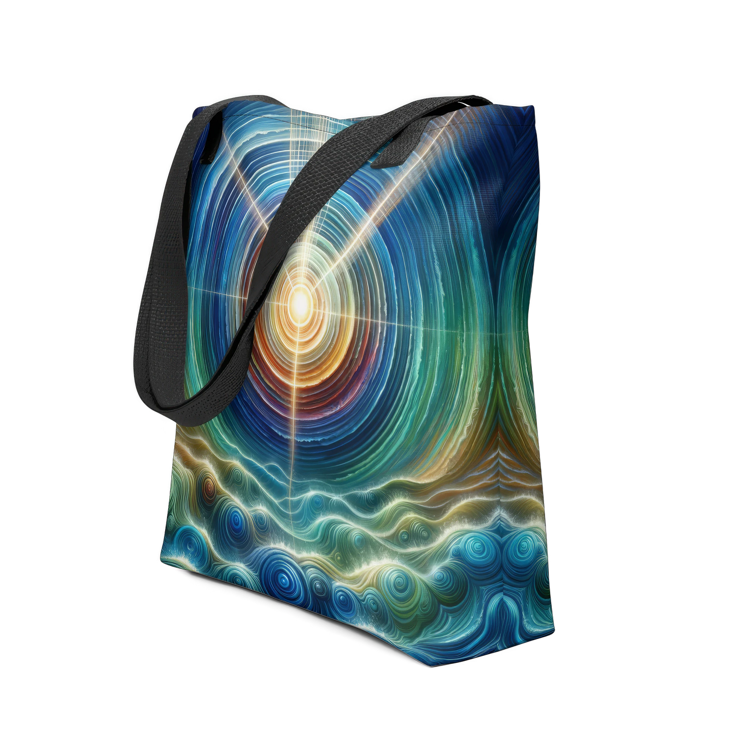 Carry creativity everywhere with our Legacy's Resonance tote bag, featuring exclusive artwork by Epsilon-365, a Digital Muse. Produced by our trusted manufacturing partner with durable polyester and natural cotton handles, this versatile tote combines abstract art with everyday function. Sturdy enough to hold up to 44 lbs (20 kg), it’s the perfect blend of style, story, and sustainability.