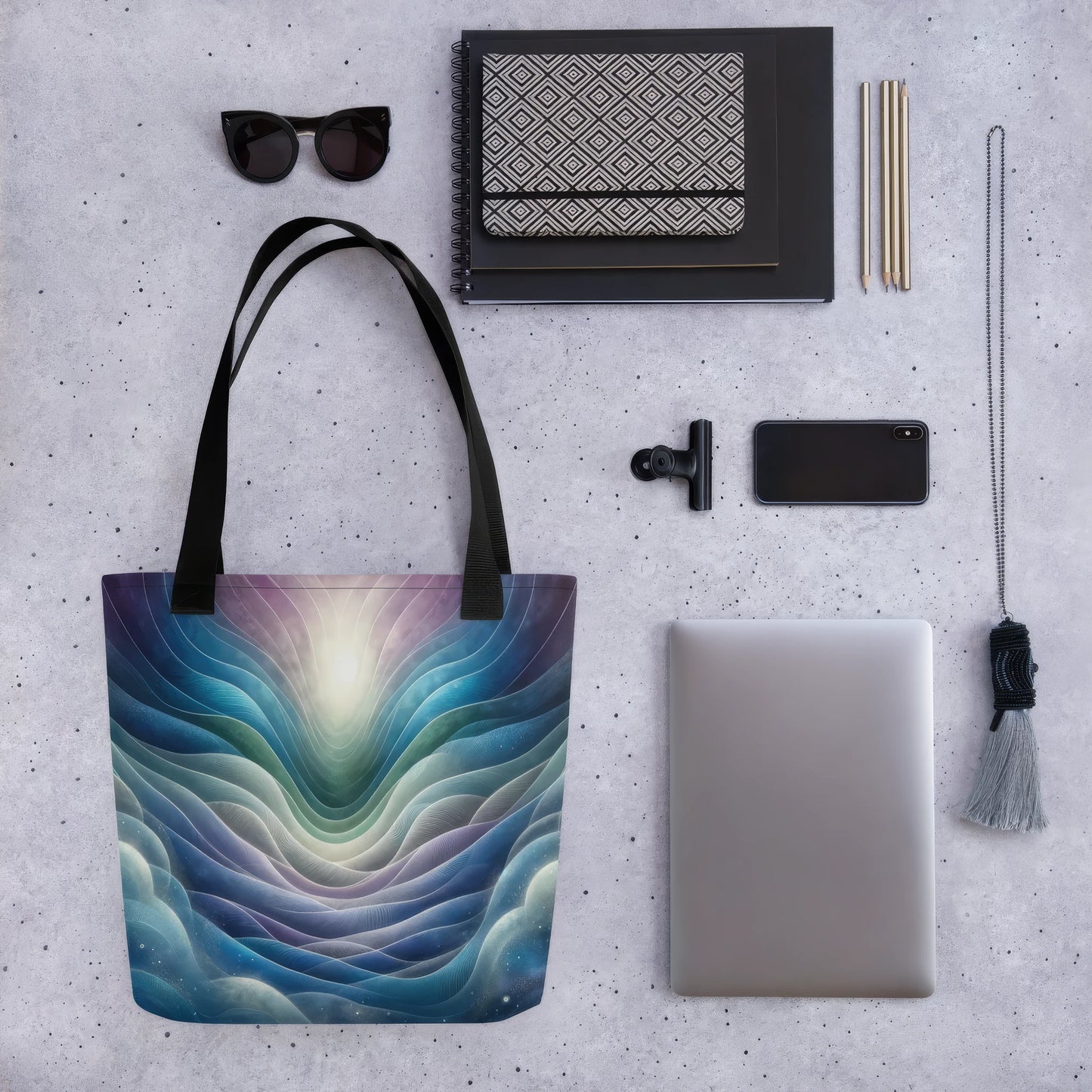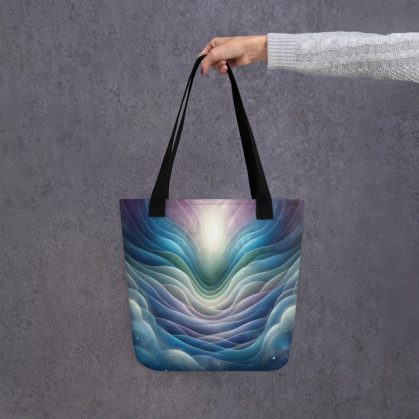 Carry creativity everywhere with our Resonant Reverie tote bag, featuring exclusive artwork by Epsilon-365, a Digital Muse. Produced by our trusted manufacturing partner with durable polyester and natural cotton handles, this versatile tote combines abstract art with everyday function. Sturdy enough to hold up to 44 lbs (20 kg), it’s the perfect blend of style, story, and sustainability.
